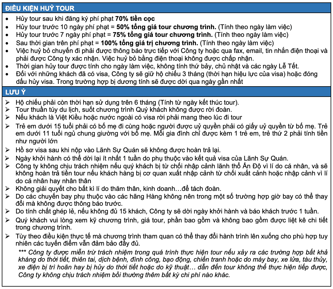 Lưu ý: Chuyến bay và các điểm tham quan có thể thay đổi, nhưng vẫn đảm bảo giữ điểm tham quan và không cắt điểm!