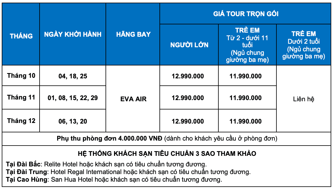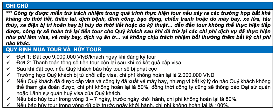 Lưu ý: Thứ tự các điểm tham quan trong chương trình có thể thay đổi tuỳ vào tình hình thực tế trên tour