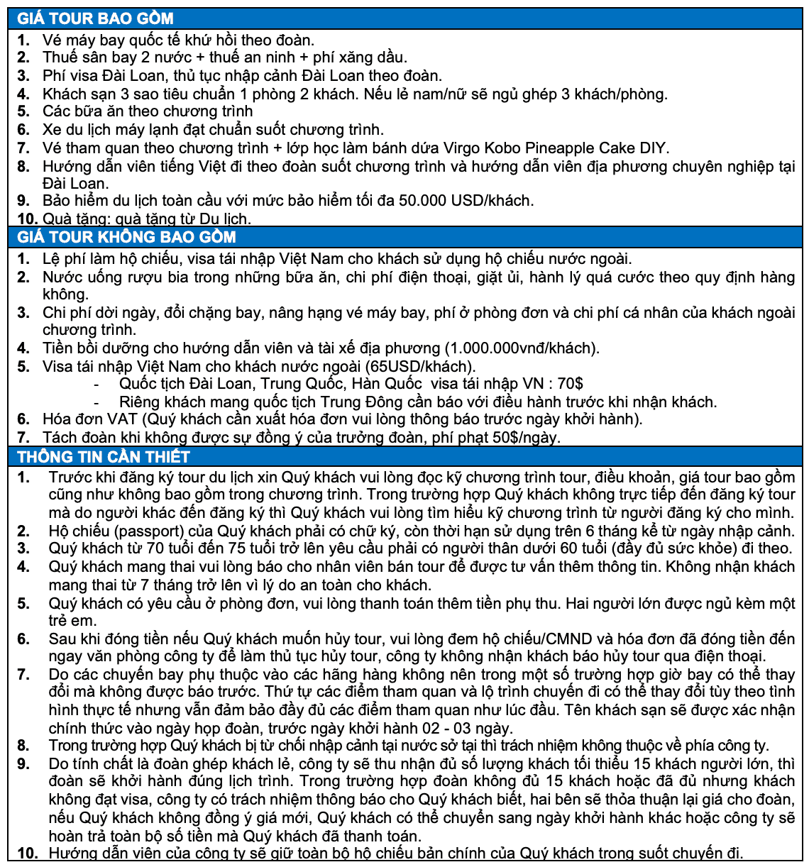 22:30 Trưởng đoàn đón Đoàn tại cột số 5 ga đi Quốc tế làm thủ tục xuất cảnh đi Đài Bắc trên chuyến bay BR382 SGNTPE bay lúc 01:25.