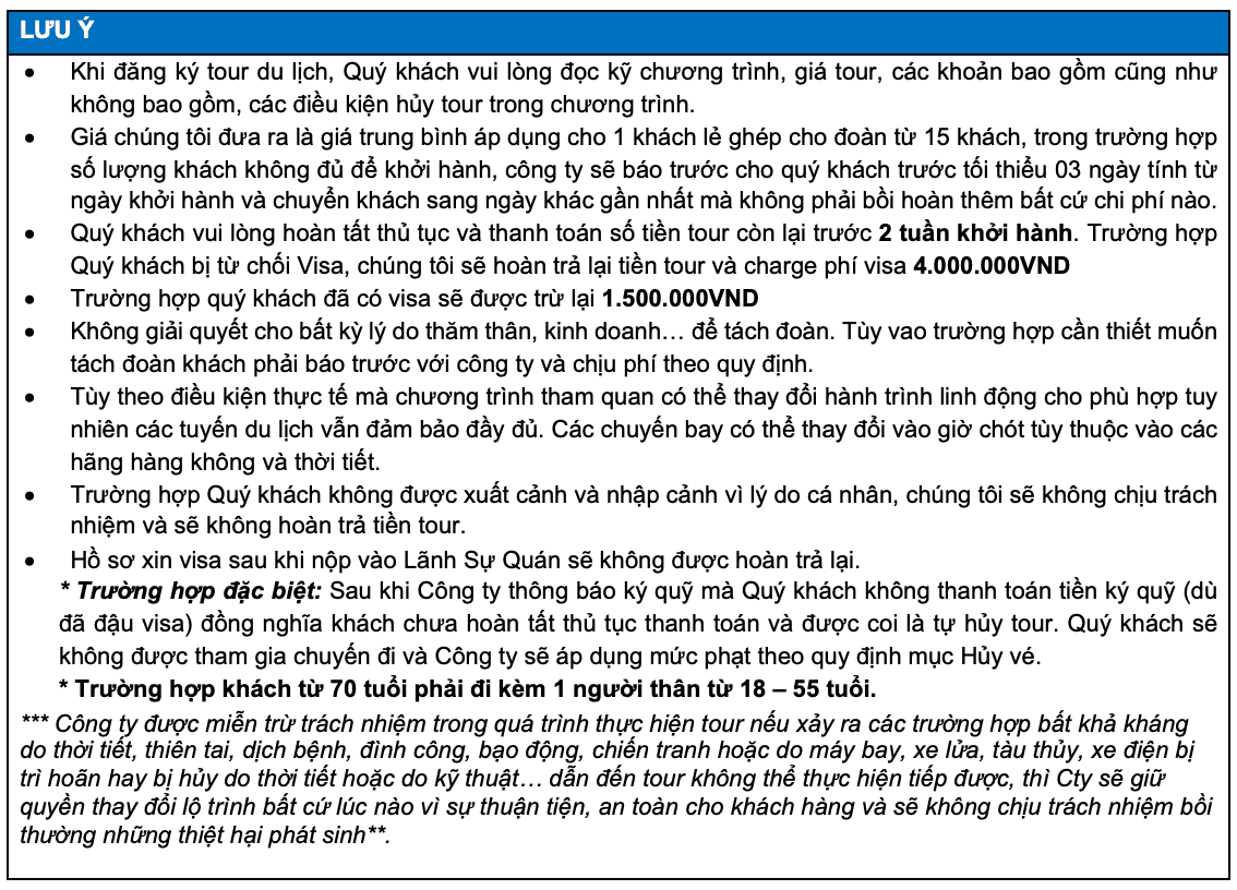 Lưu ý: Các điểm tham quan trong chương trình sẽ linh động sao cho phù hợp với tình hình thực tế.