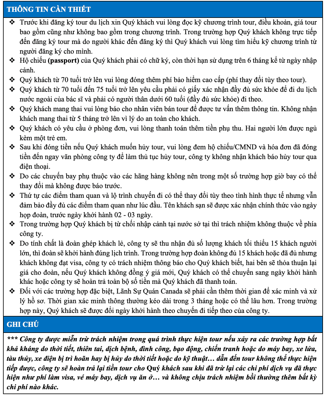Lưu ý : Những điểm tham quan trong chương trình có thể thay đổi để phù hợp với điều kiện thực tế nhưng vẫn đảm bảo các địa điểm tham quan trong chương trình.