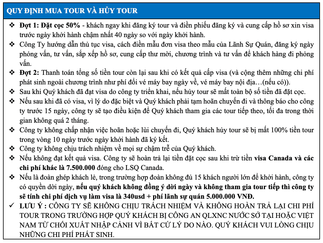 • Đi tour Canada hỗ trợ làm dịch vụ Visa Mỹ(đậu lên đến 90%).