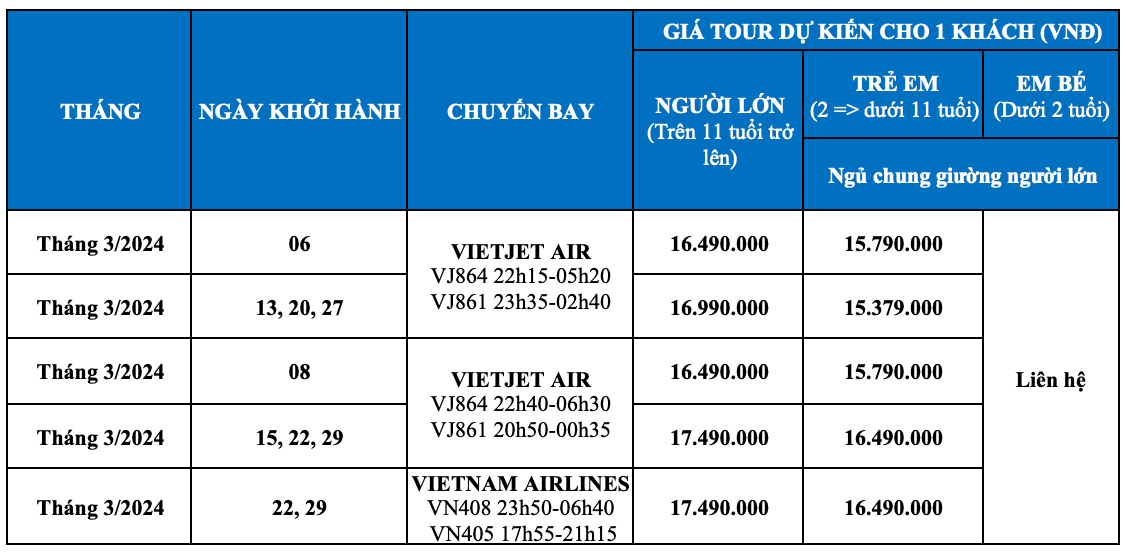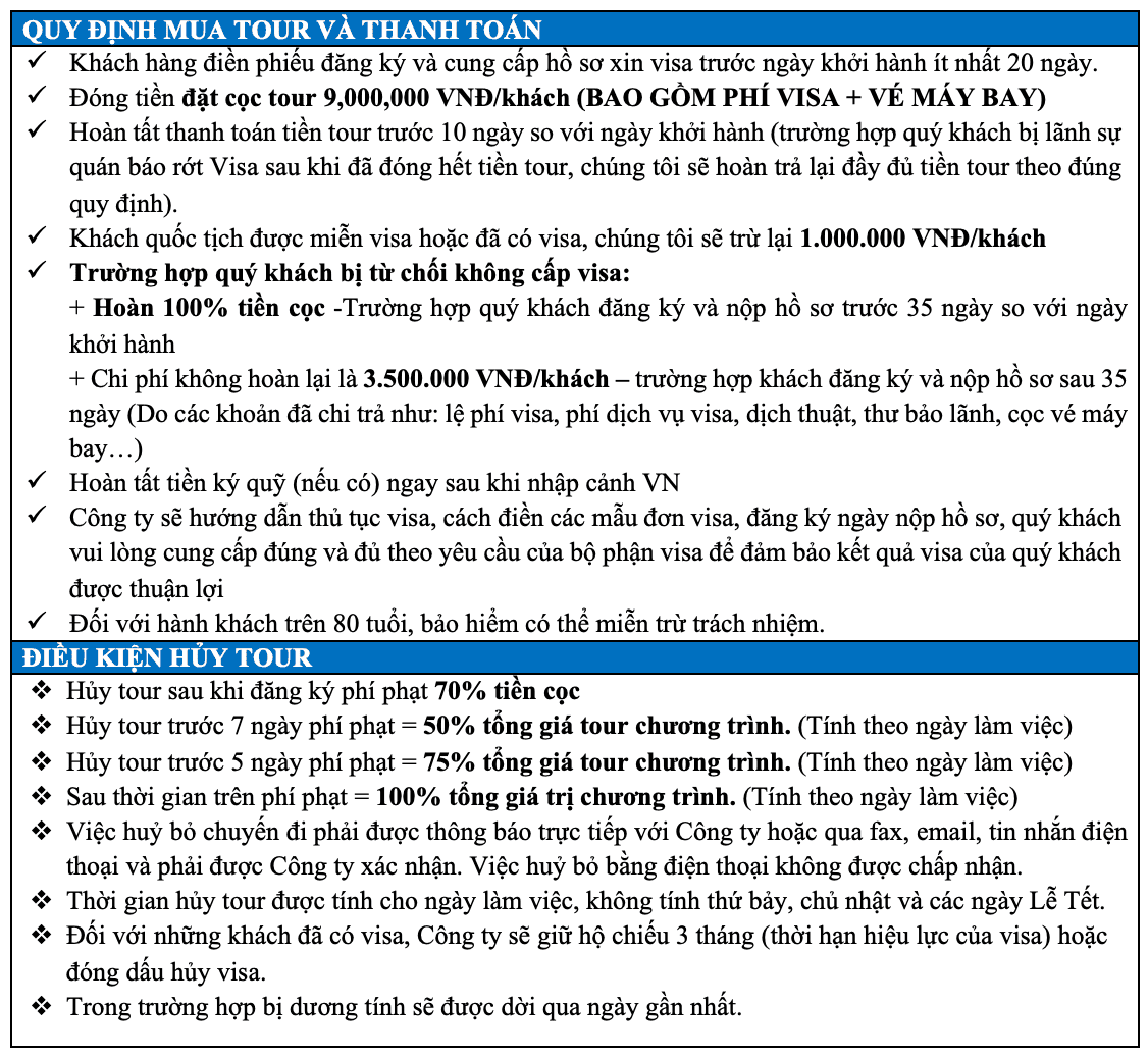 Lưu ý: Các điểm tham quan trong chương trình sẽ linh động sao cho phù hợp với tình hình thực tế.