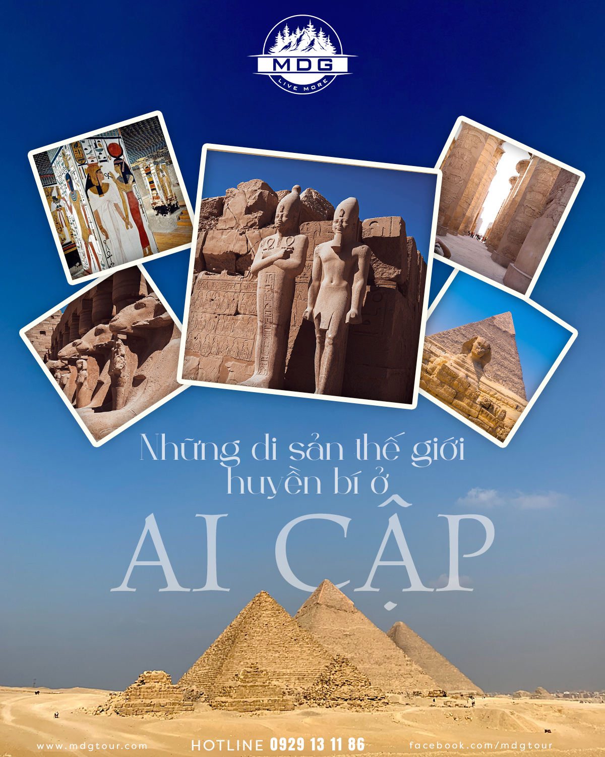 AI CẬP là quốc gia có lịch sử vào hàng lâu đời nhất, là một trong các quốc gia đầu tiên trên thế giới vào thiên niên kỷ 10 TCN, và đã trải qua quá trình phát triển sớm nhất về chữ viết, nông nghiệp, đô thị hoá, tôn giáo có tổ chức và chính phủ trung ương. Di sản văn hoá phong phú của Ai Cập là bộ phận của bản sắc dân tộc, từng phải chịu ảnh hưởng mà đôi khi là đồng hoá từ bên ngoài như Hy Lạp, Ba Tư, La Mã, Ả Rập, Ottoman, và châu Âu như Anh, Pháp. Về tôn giáo, Ai Cập từng là một trong các trung tâm ban đầu của Cơ Đốc giáo, trải qua Hồi giáo hoá trong thế kỷ VII và từ đó duy trì là một quốc gia Hồi giáo, tuy nhiên Cơ Đốc giáo vẫn chiếm một phần đáng kể đến ngày nay ở quốc gia này. Hãy cùng khám phá những di tích đã được công nhận là di sản của thế giới, những nơi đã tồn tại hàng ngàn năm theo chiều dài lịch sử Ai Cập với nhiều sự huyền bí cho đến ngày nay vẫn nhiều tranh luận về thời điểm xuất hiện và quá trình xây dựng...