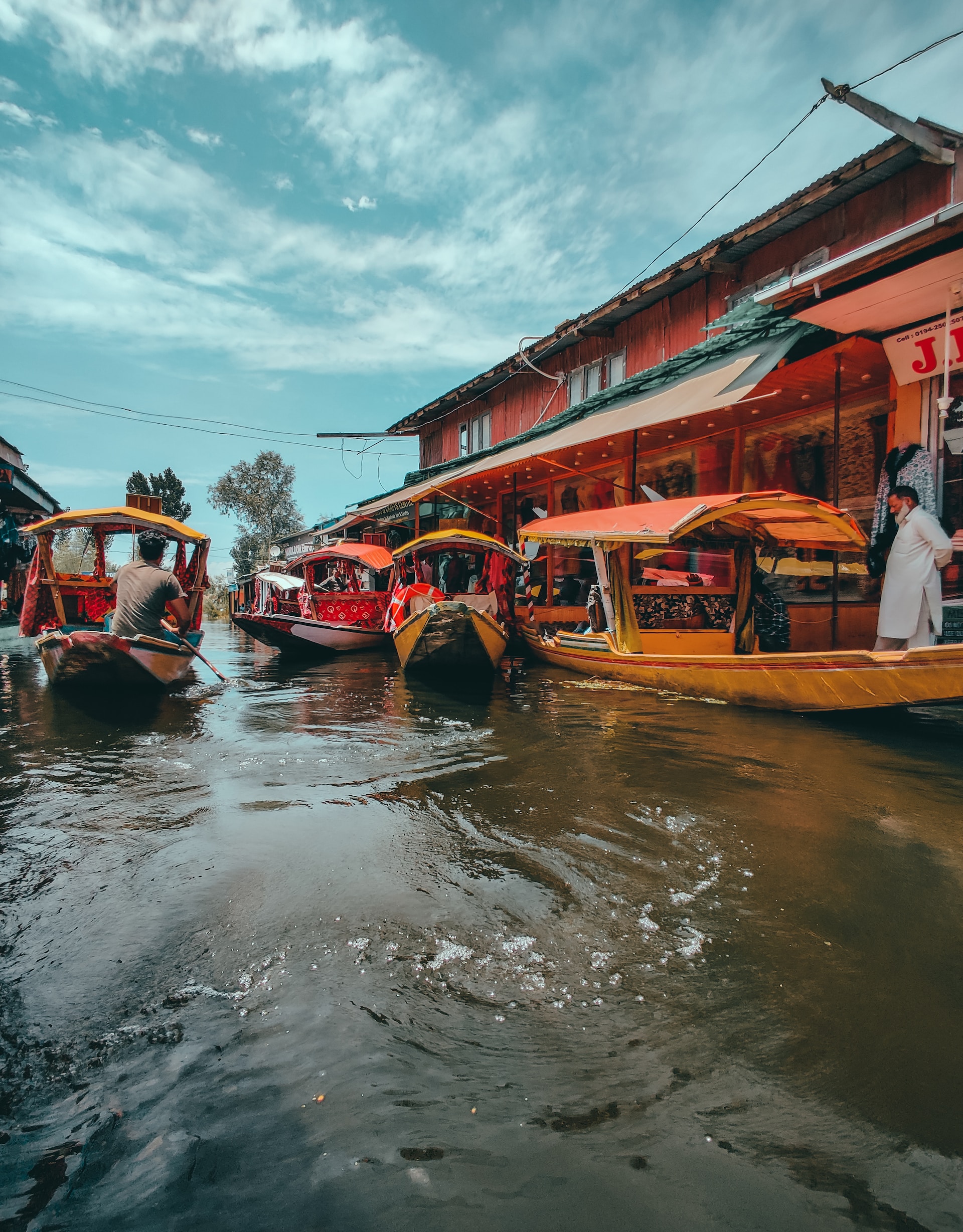 Đến hồ Dal ở Srinagar và di chuyển bằng Shikaras - những chiếc thuyền nhỏ đến Nhà thuyền nằm trên hồ Dal Srinagar.