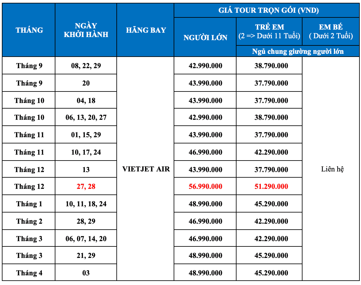 - 06:30: về đến Tp.HCM, kết thúc chương trình.