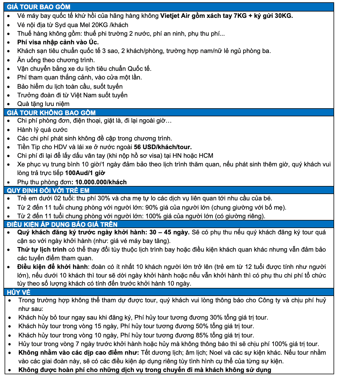 Ngày 7+8: MELBOURNE - TP. HCM (Ăn sáng, tối)
