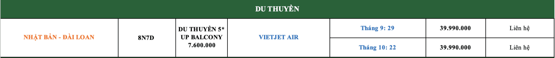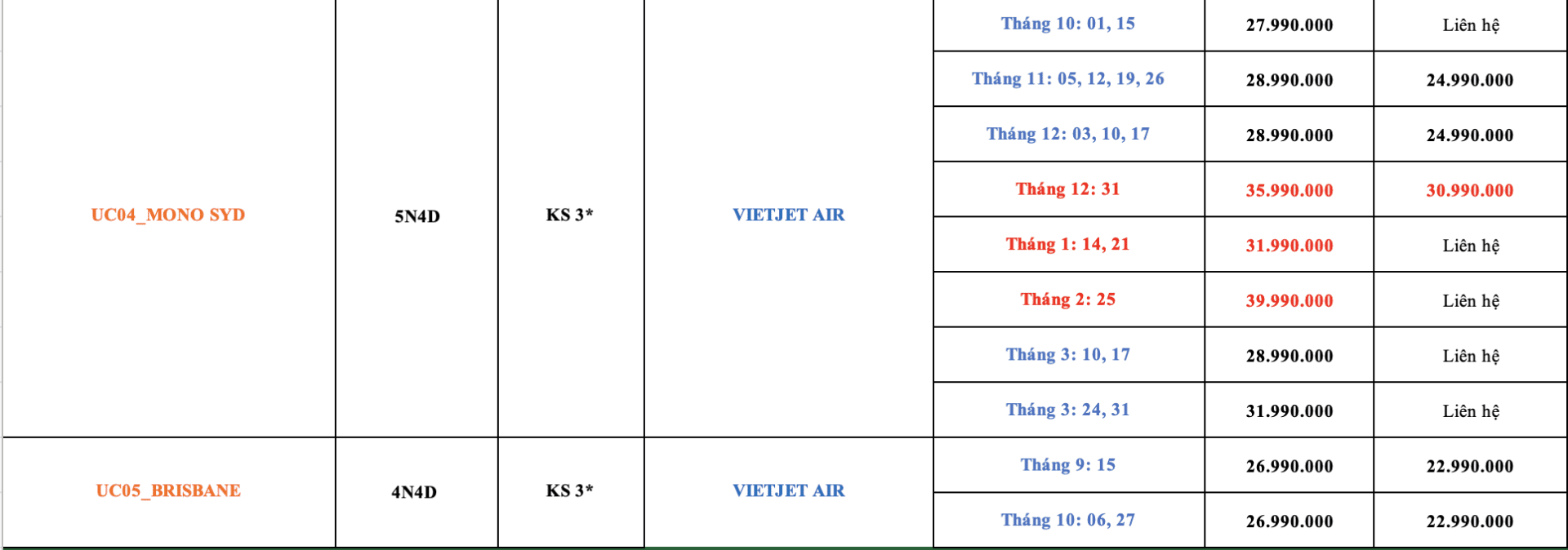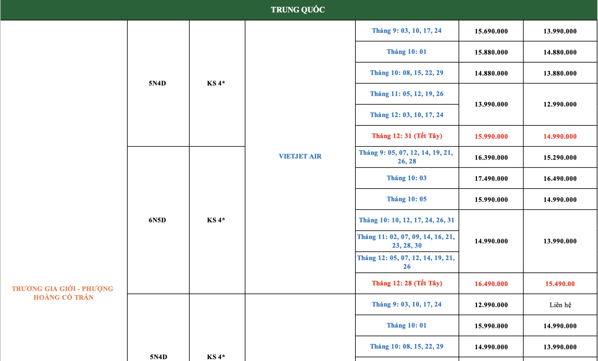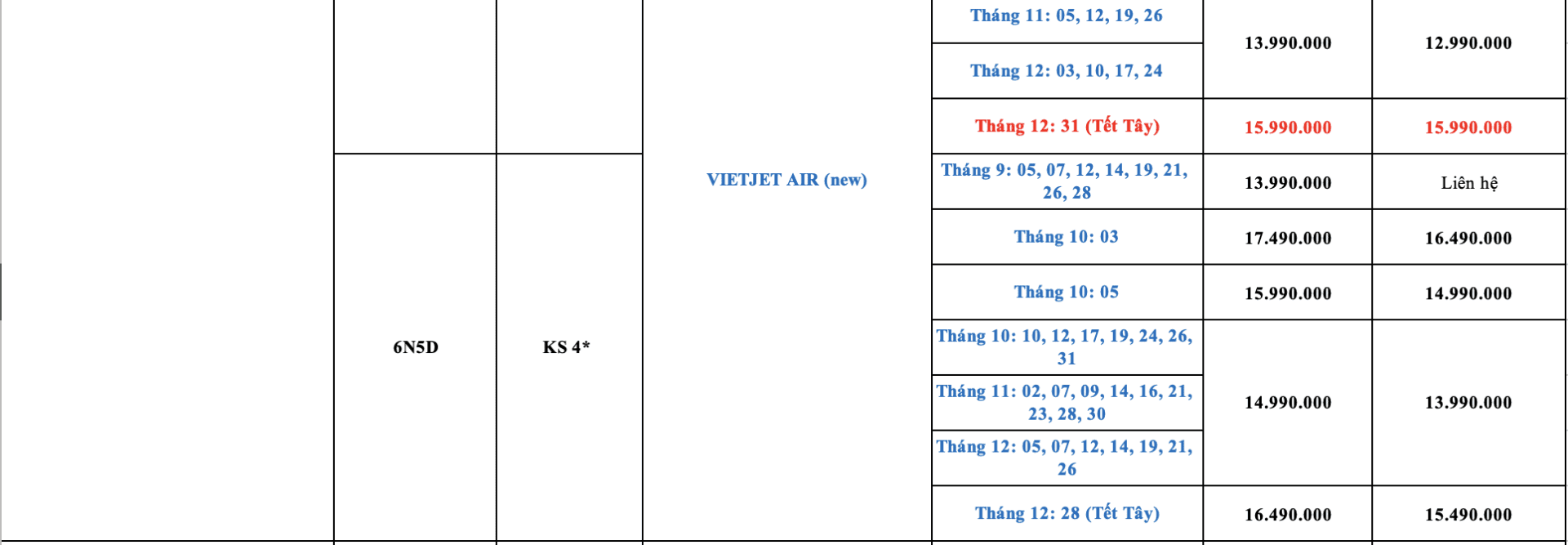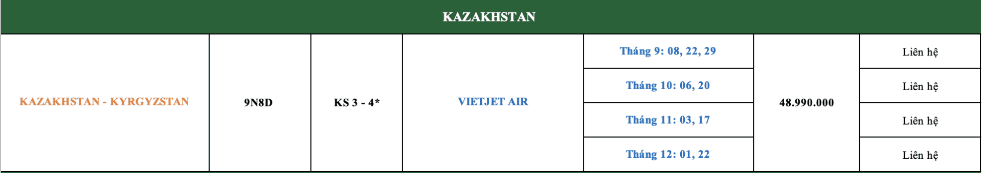 LỊCH KHỞI HÀNH
