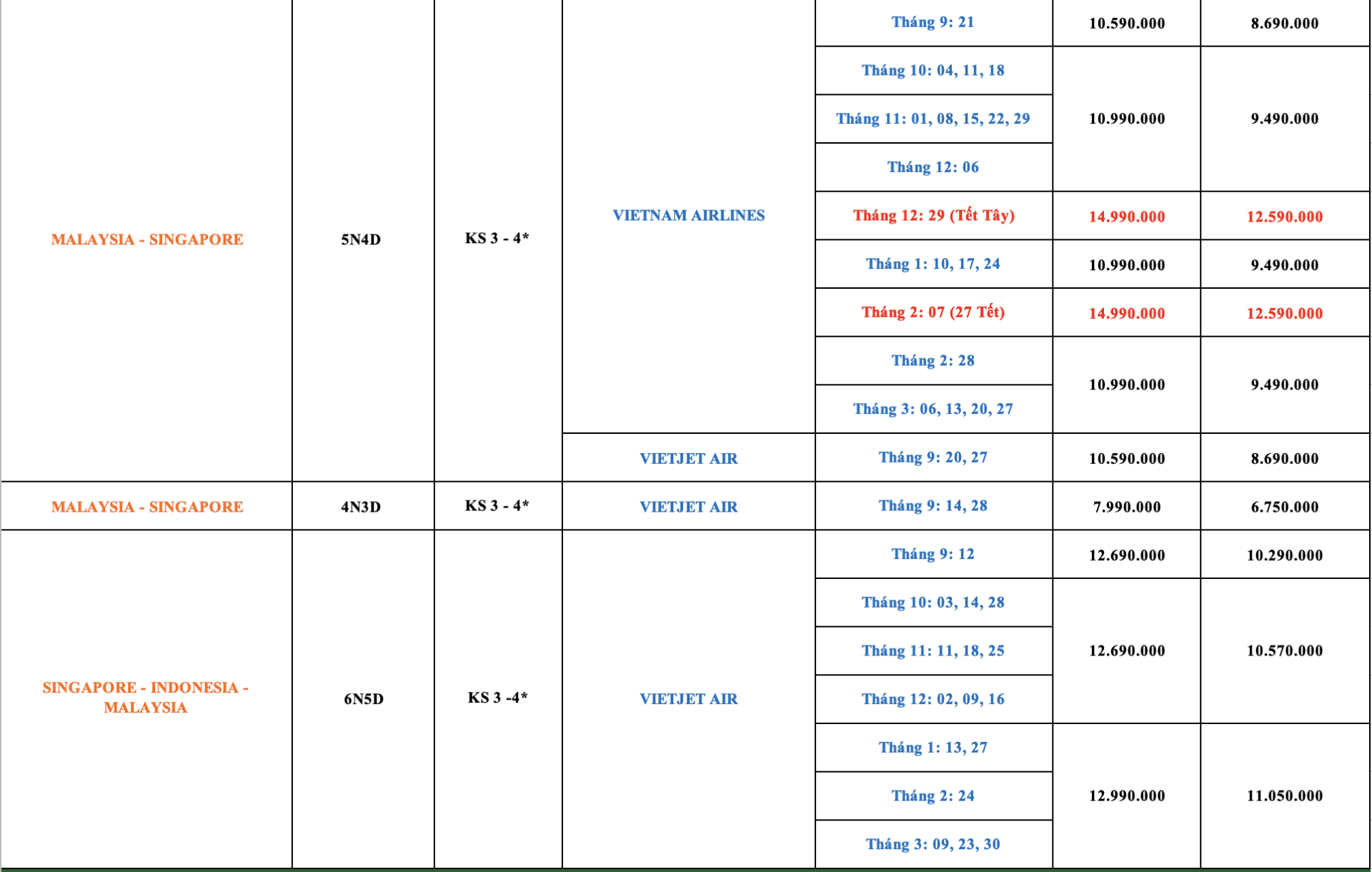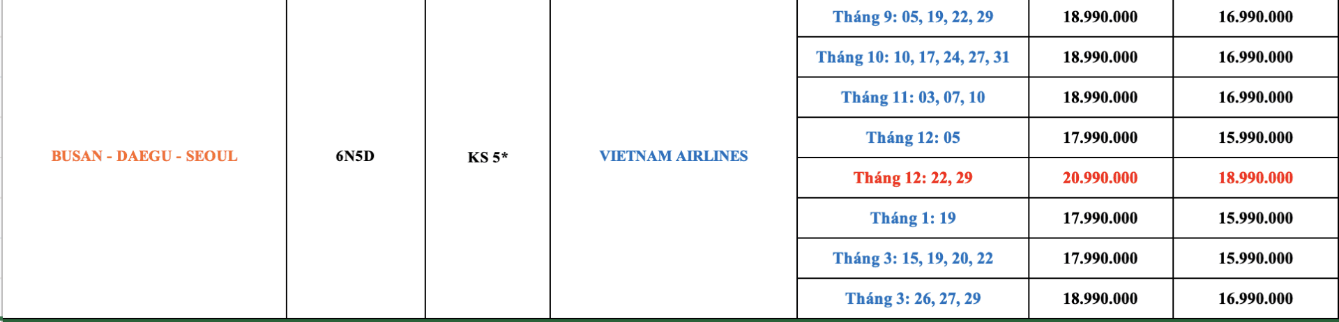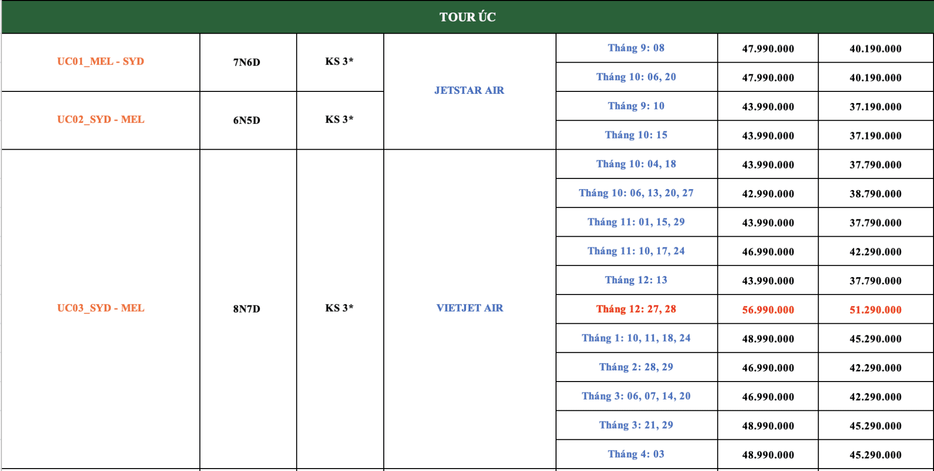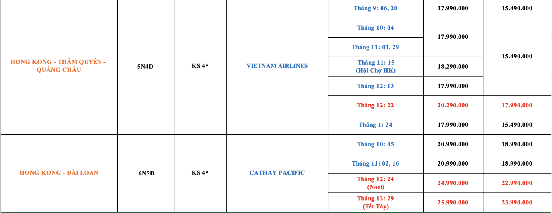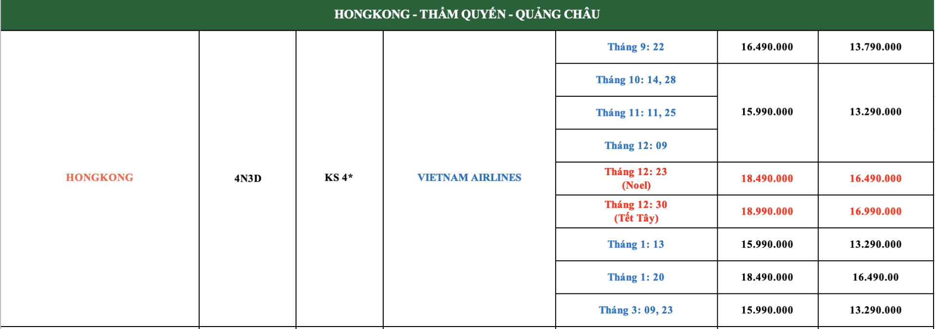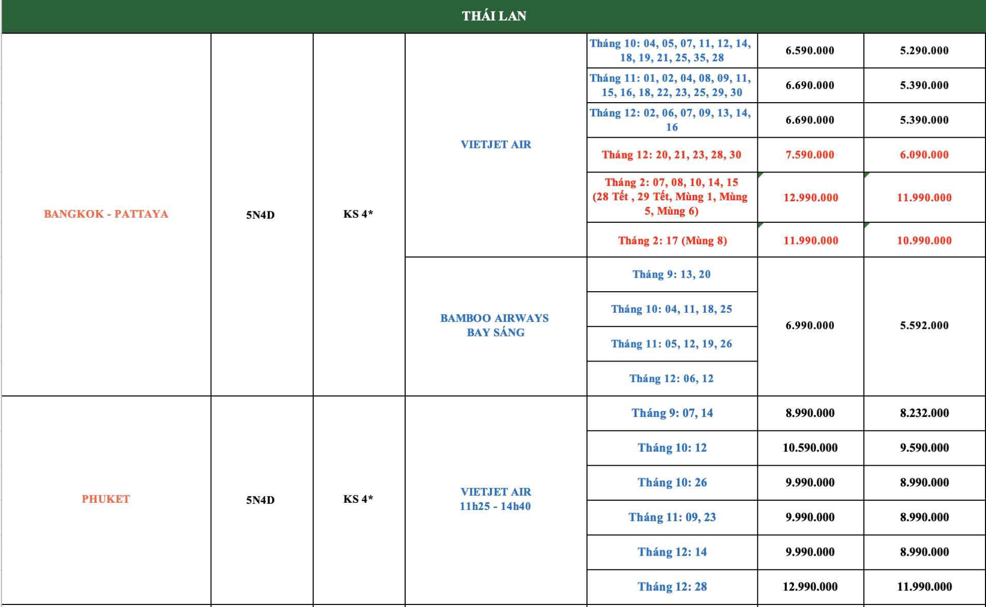 LỊCH KHỞI HÀNH