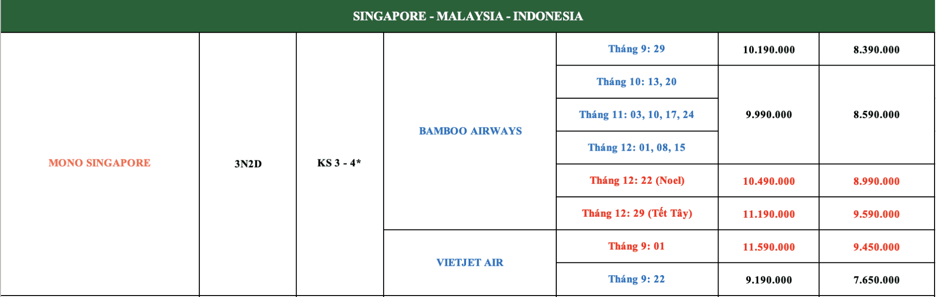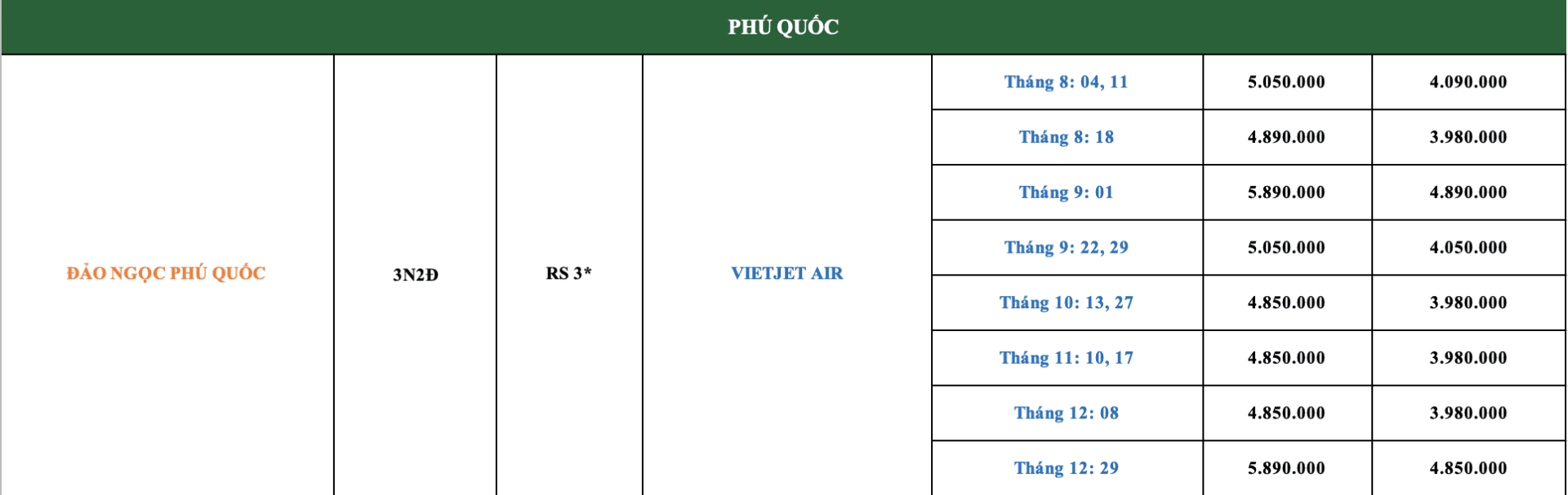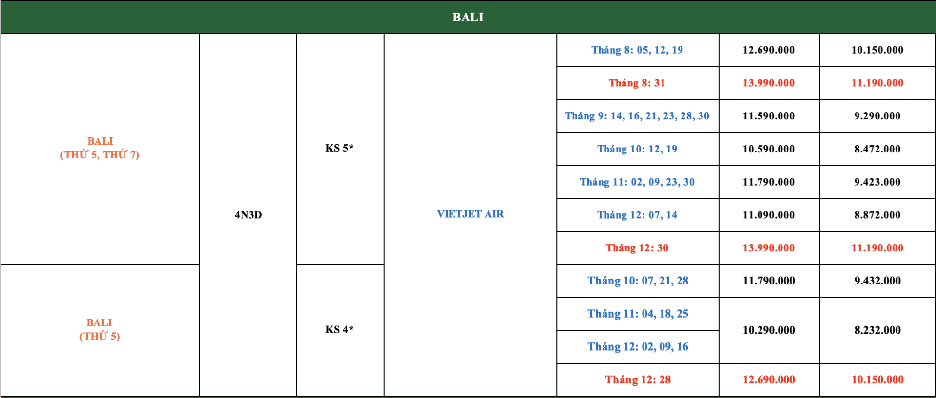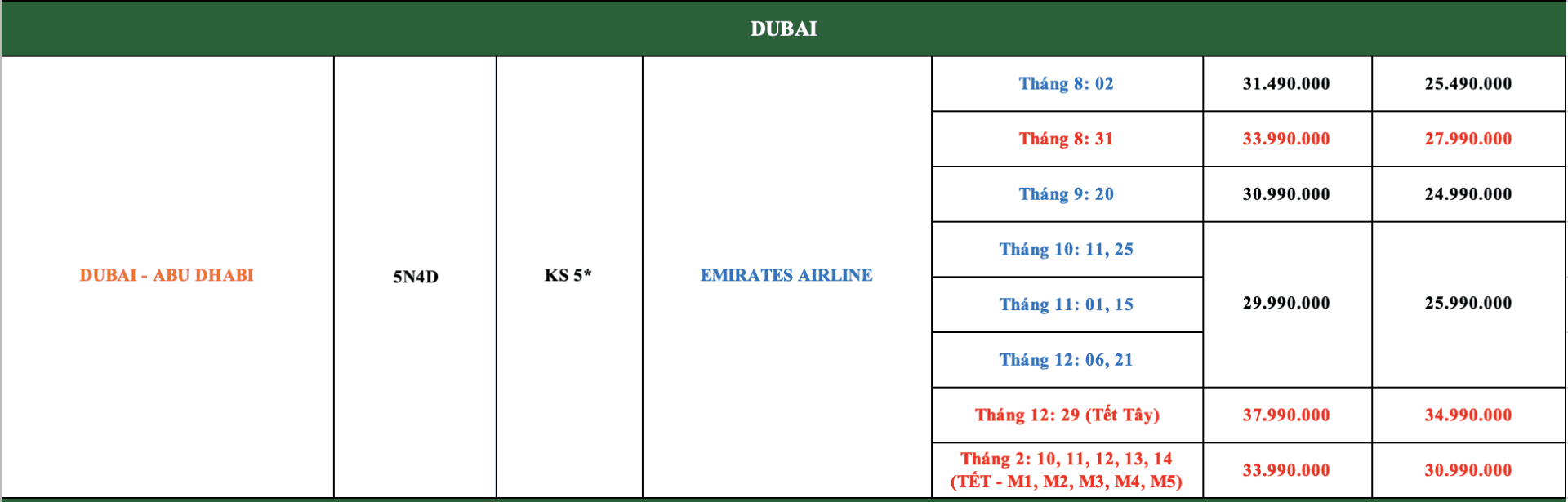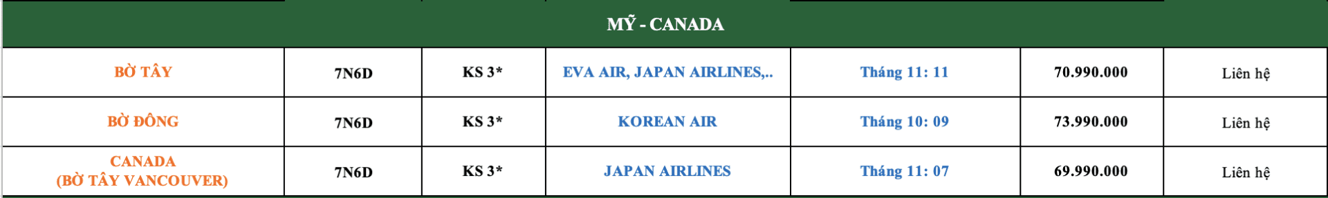 LỊCH KHỞI HÀNH