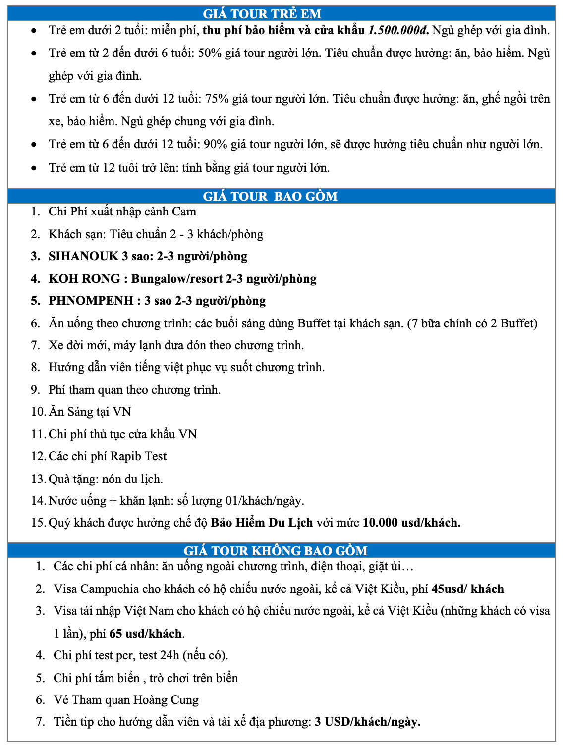 16:00 Đến cửa khẩu Mộc Bài, HDV làm thủ tục xuất cảnh Cambodia cho đoàn, tiếp tục đưa đoàn về Tp. Hồ Chí Minh. Đến điểm đón ban đầu, kết thúc Tour Cambodia chia tay và hẹn gặp lại Quý khách trên những tour sau.
