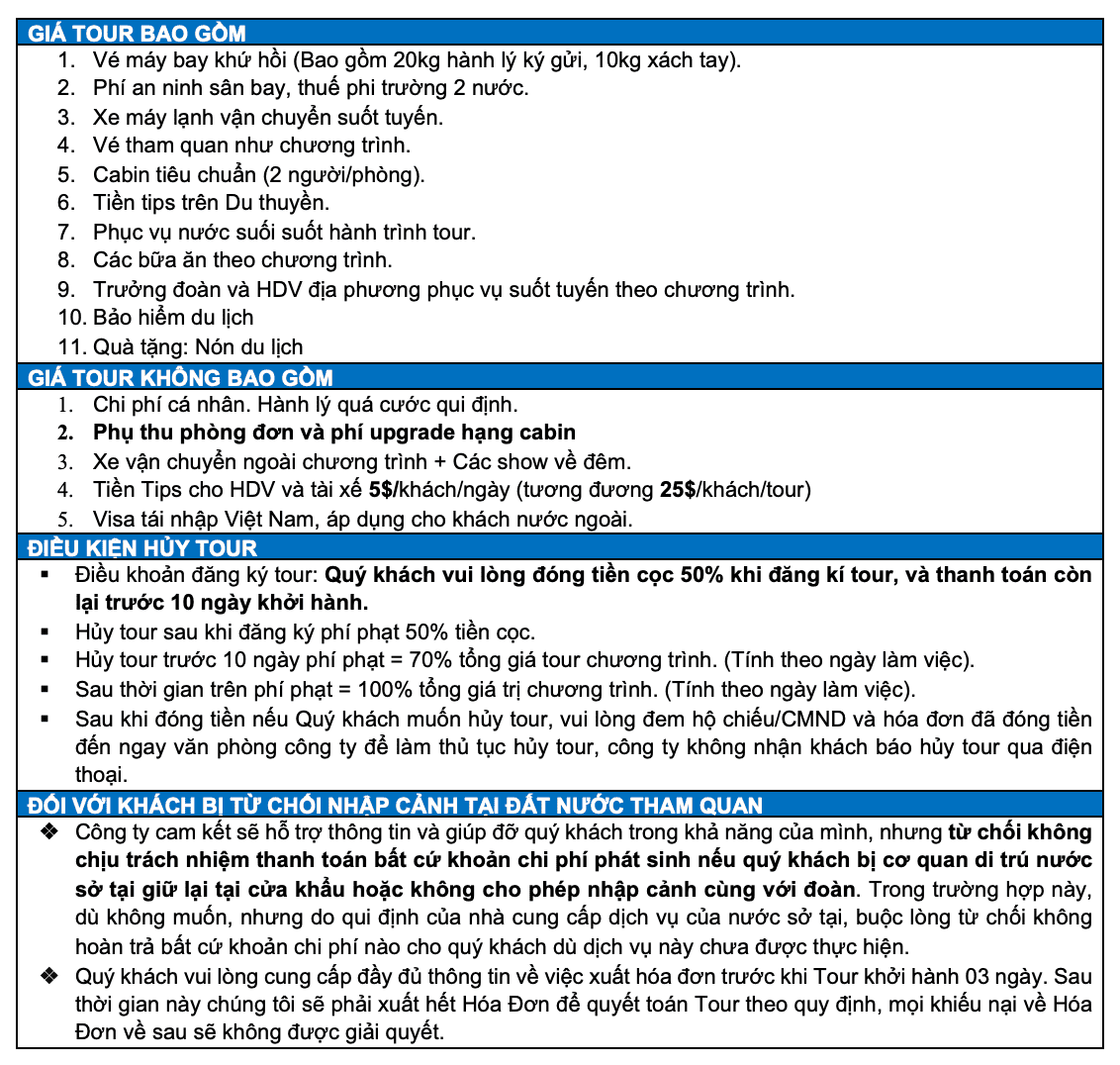 * Lịch khởi hành: 31/8 (dịp Lễ 2/9)