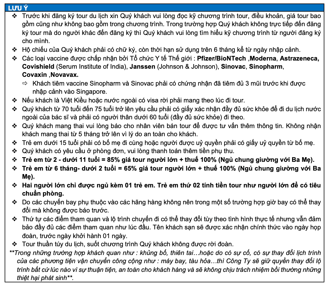 Lưu ý: Các điểm tham quan trong chương trình sẽ linh động sao cho phù hợp với tình hình thực tế.